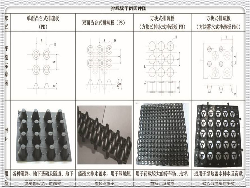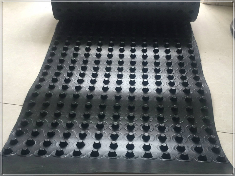 排水板鋪設時自然展開、疏松地鋪設于規劃好的位置。排水板可按排水坡度的縱向或橫向統一的方向鋪設。搭接必須按照排水坡度的方向搭接,不允許逆向搭接。個別部位需要臨時固定時,采用瀝青馬蹄脂點式黏結固定。排水板的終止收口需要結合建筑部位設計確定。