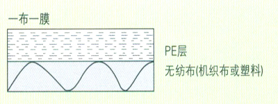 復(fù)合土工膜是在薄膜的一側(cè)或兩側(cè)貼上土工布,形成復(fù)合土工膜。其形式有一布一膜、二布一膜、兩膜一布等。