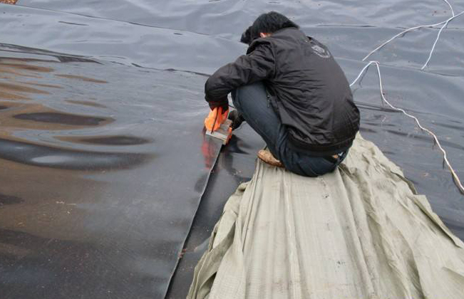 在冬天捕魚后,合理計劃,首先將池水排干,挖去雜物淤泥,晾曬1冬一20天后,在池底和邊坡均勻地鋪貼一層15一20厘米厚的粘土,然后用機械碾壓或夯實。然后鋪設一層0.5毫米厚的防滲膜做防滲保護層,依照魚塘的形狀精確測量其相關尺度,然后按實際情況來裁剪和拼接防滲膜,膜與膜之間接縫的搭接寬度通常不小于15厘米,防滲膜鋪設完成后,應盡量削減在膜面上行走、搬動東西等,凡能對防滲膜形成損害的物件,均不該放在膜上或攜帶在膜上行走,避免對膜形成意外損害。最后在護坡上撒播一些草種,實施草皮護坡,以防雨水沖刷。