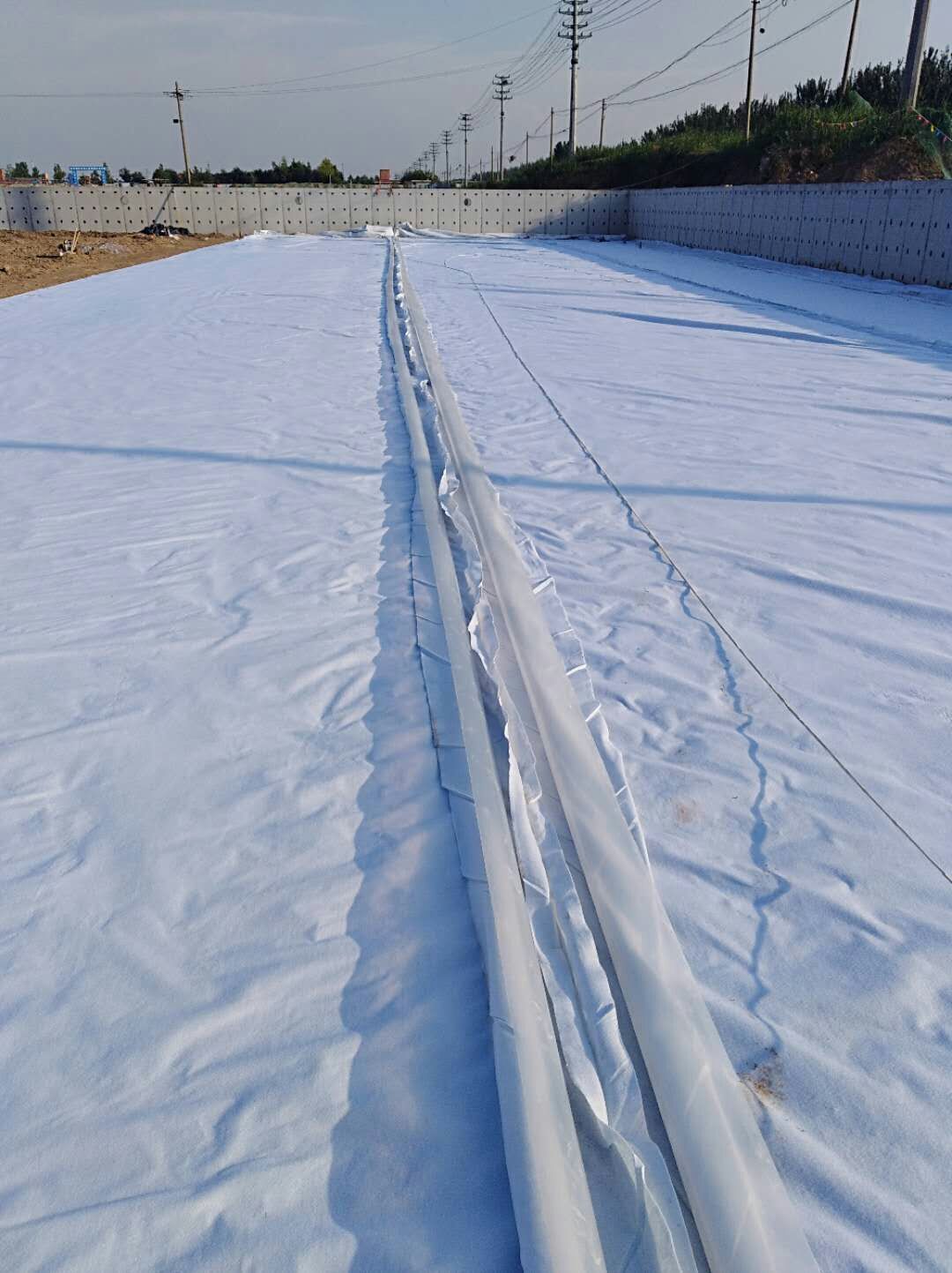 土工布作為土工膜的保護(hù)層,使保護(hù)防滲層不受損壞。為減少紫外線照射,增加抗老化性能,最好采用埋入法鋪設(shè)。